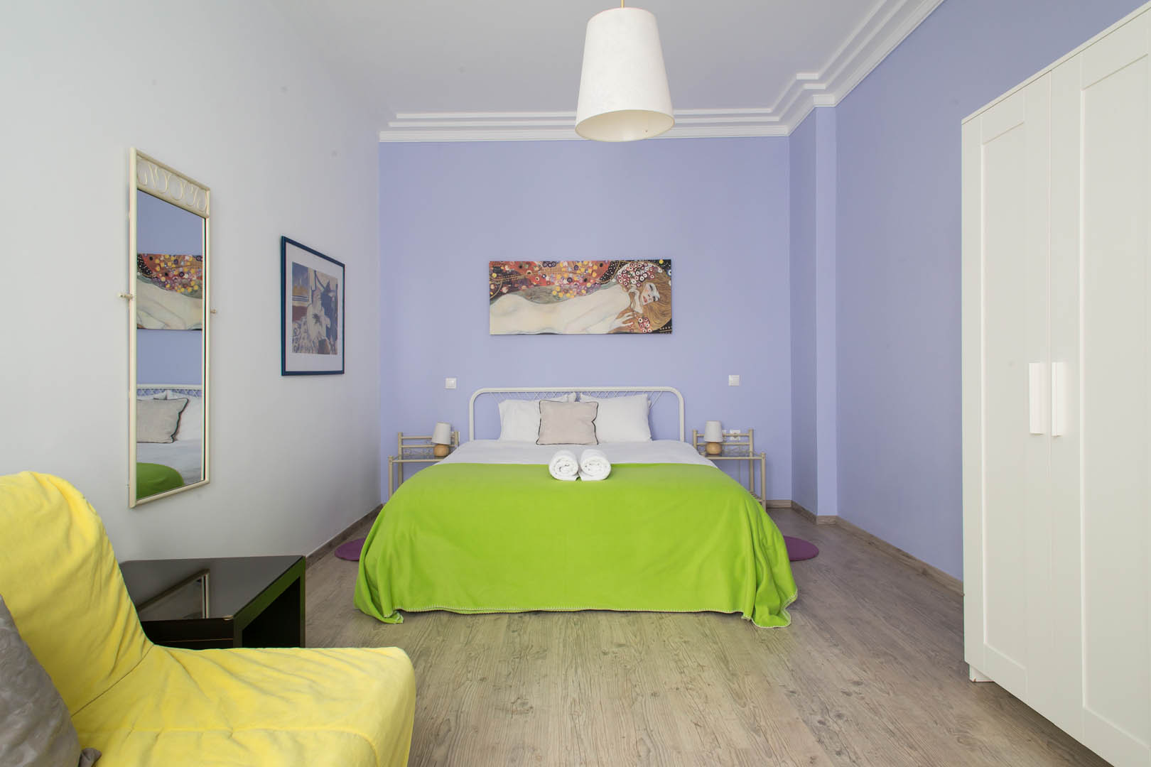 The 72 square meter Hermes Apartment, is overlooking the backyard and has two bedrooms, both of which feature a double bed, while one of them also features a sofa that turns into an extra double bed. It also has a dining room, a fully equipped kitchen and bathroom.